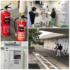 本日、消防訓練を行いました。実際に火災報知器を鳴らし、火災現場の確認と水消火器を使用した消火活動を行い、もしもの火災に備え訓練をしました。